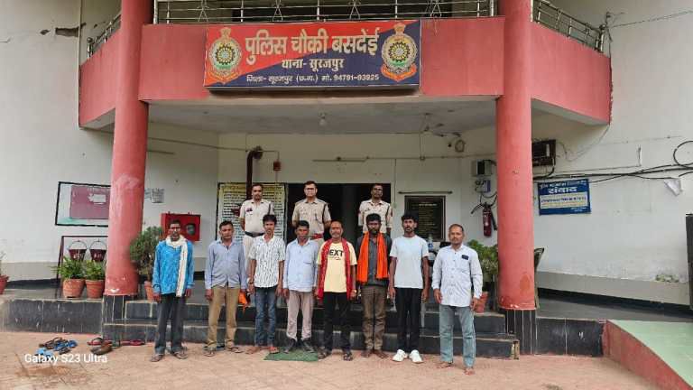 सूरजपुर :- चौकी बसदेई क्षेत्र में शांति और सुरक्षा व्यवस्था को बनाए रखने के लिए वरिष्ठ पुलिस अधीक्षक के निर्देश पर एक विशेष अभियान चलाया गया। इस अभियान के तहत चौकी बसदेई में क्षेत्र के गुंडा-बदमाशों और निगरानी बदमाशों को तलब कर उनकी चेकिंग की गई। नवपदस्थ चौकी प्रभारी योगेंद्र जायसवाल के नेतृत्व में इस कार्रवाई को अंजाम दिया गया, जिसमें बदमाशों को कड़ी चेतावनी दी गई।