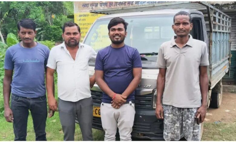 राशन के कालाबाजारी का भंडाफोड़ ग्रामीणों ने राशन दुकान से चावल , चना , शक्कर ले जाते पिकअप को पकड़ा…