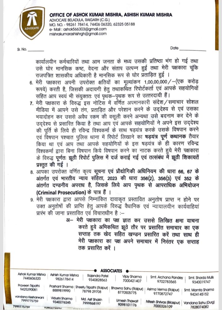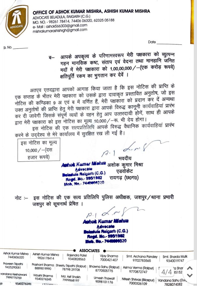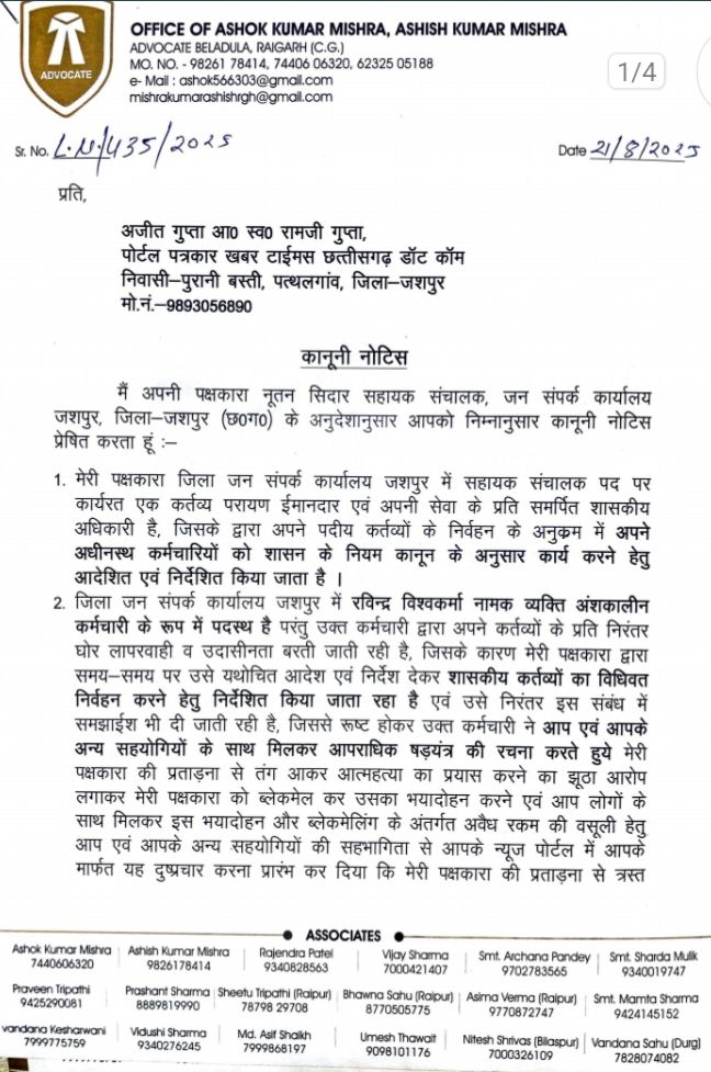 जशपुर में जनसंपर्क विभाग के अधिकारी का पत्रकारों को नोटिस, एक-एक करोड़ रुपये हर्जाने की धमकी…