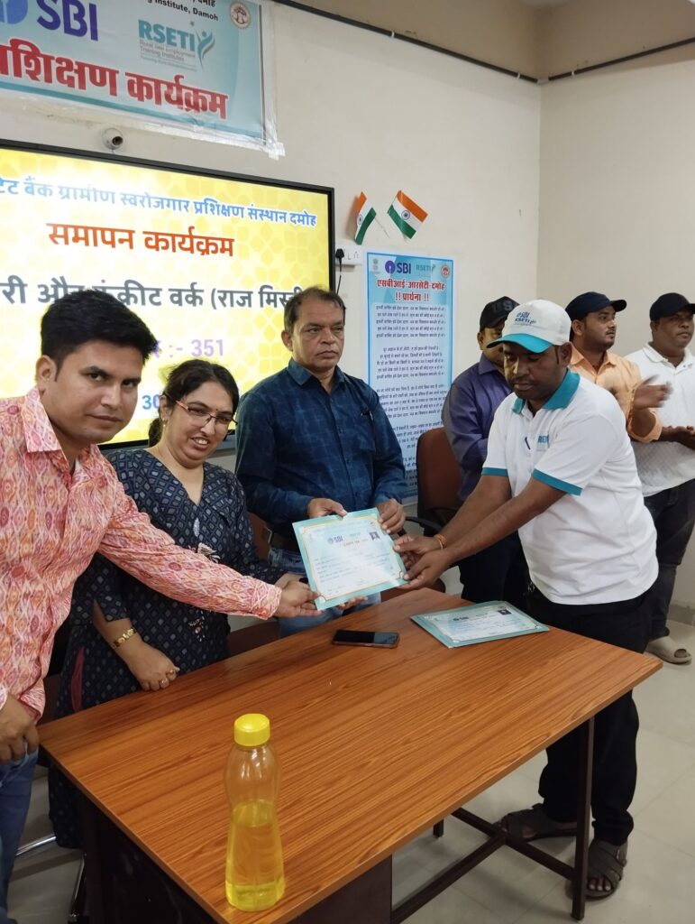 मध्यप्रदेश के दमोह आरसेटी में 30 दिवसीय राजमिस्त्री प्रशिक्षण संपन्न छत्तीसगढ़ के सूरजपुर से ट्रेनर अधिकारी उमेन रजा ने जिले का नाम किया रौशन…