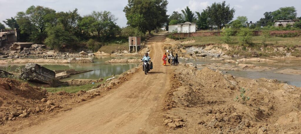 गोबरी नाला पुल ध्वस्त होने के बाद अब मिला अस्थायी मार्ग लोगों को मिली राहत…..