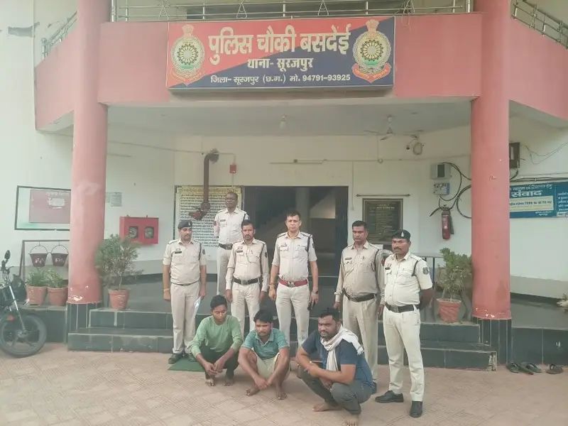 इसी कड़ी में बसदेई पुलिस चौकी टीम को सूचना मिली की प्रतापपुर की तरफ से तस्कर मवेशियों को कानपुर के बूचड़खाने ले जा रहे हैं। इस सूचना पर त्वरित कार्रवाई करते हुए बसदेई चौकी प्रभारी मनोज द्विवेदी के नेतृत्व में पुलिस टीम ने जाल बिछाया और वाहन को पकड़ लिया। इस दरम्यान सूत्रों से मिली जानकारी अनुसार आरोपी बतौर रहीम, उम्र करीब 28 वर्ष, निवासी जियावन, सिंगरौली, (मध्यप्रदेश) वहीं दूसरा आरोपी तनवीर आलम उम्र करीब 34 वर्ष तीसरे आरोपी बतौर खालिद हुसैन, उम्र करीब 21 वर्ष, निवासी गिधेर, सिंगरौली, (मध्यप्रदेश) वहीं, इस मामले में एक अन्य आरोपी मकसूद मौके से फरार हो गया, जिसकी तलाश में पुलिस छापेमारी कर रही है। बहरहाल सूरजपुर पुलिस की यह कार्रवाई न केवल मवेशी तस्करी पर अंकुश लगाने में महत्वपूर्ण है, बल्कि क्षेत्र में कानून – व्यवस्था को और मजबूत करने का भी संदेश देती है।